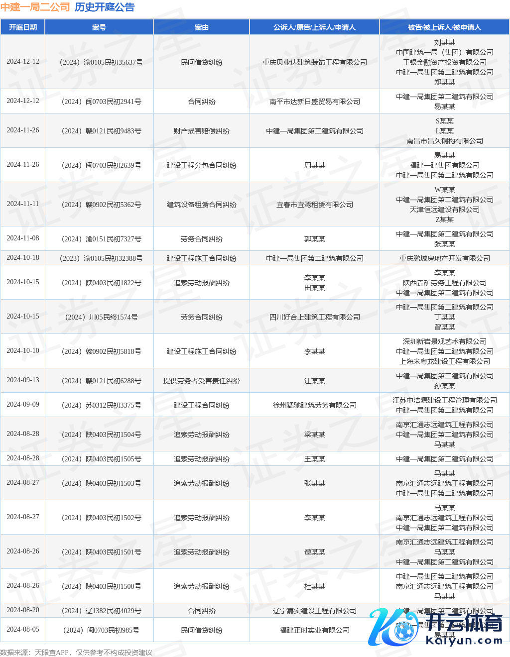 本站音问,把柄天眼查APP泄露,近日公布了一则中建一局集团第二建筑有限公司手脚原告/上诉东谈主的开庭公告,珍摄本色如下: