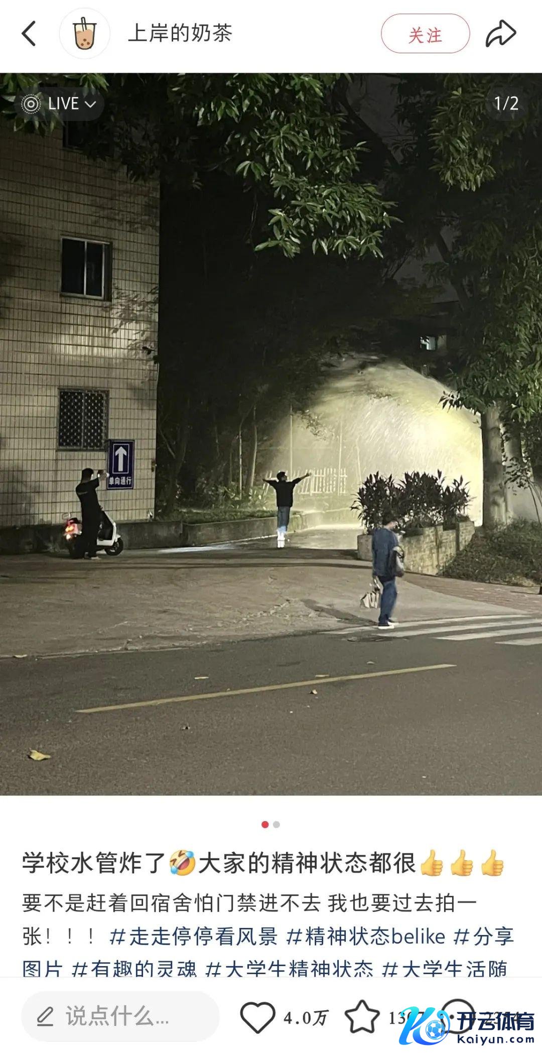 学校水管爆了,别急,先来拍个照,这可太出片了!