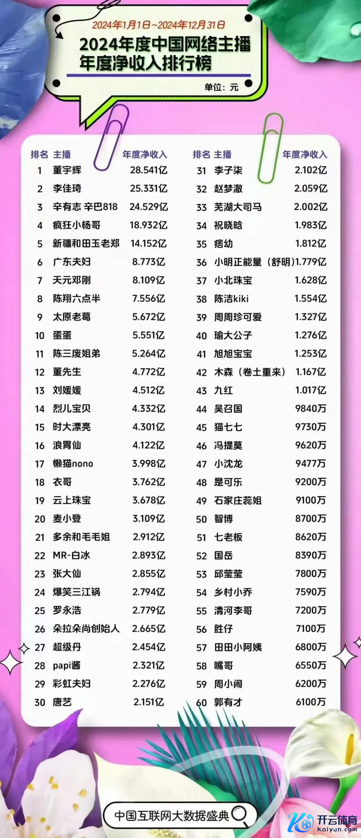2024年的榜单与2023年的不错说有许多变化,但不变的是带货主播的收货智力依旧在线。