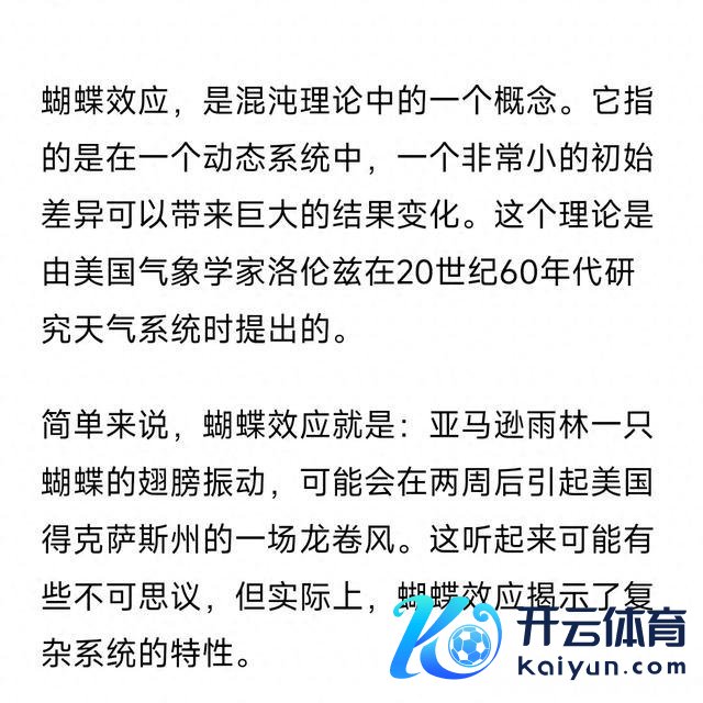 蝴蝶效应是好意思国满足学家洛伦茨所漠视的表面体育游戏app平台,亚马逊一只蝴蝶的翅膀出动,就可能引起好意思国海啸的发生,听起来让东说念主合计不可想议,但试验上仅仅迟滞表面中,一种迟滞效应。好意思国泰斗杂志发出了乙醇不错至癌的论说,引起了西方各大酒业公司的股票着落,就连中国的茅台和五粮液这一类一级酒也未能避免。