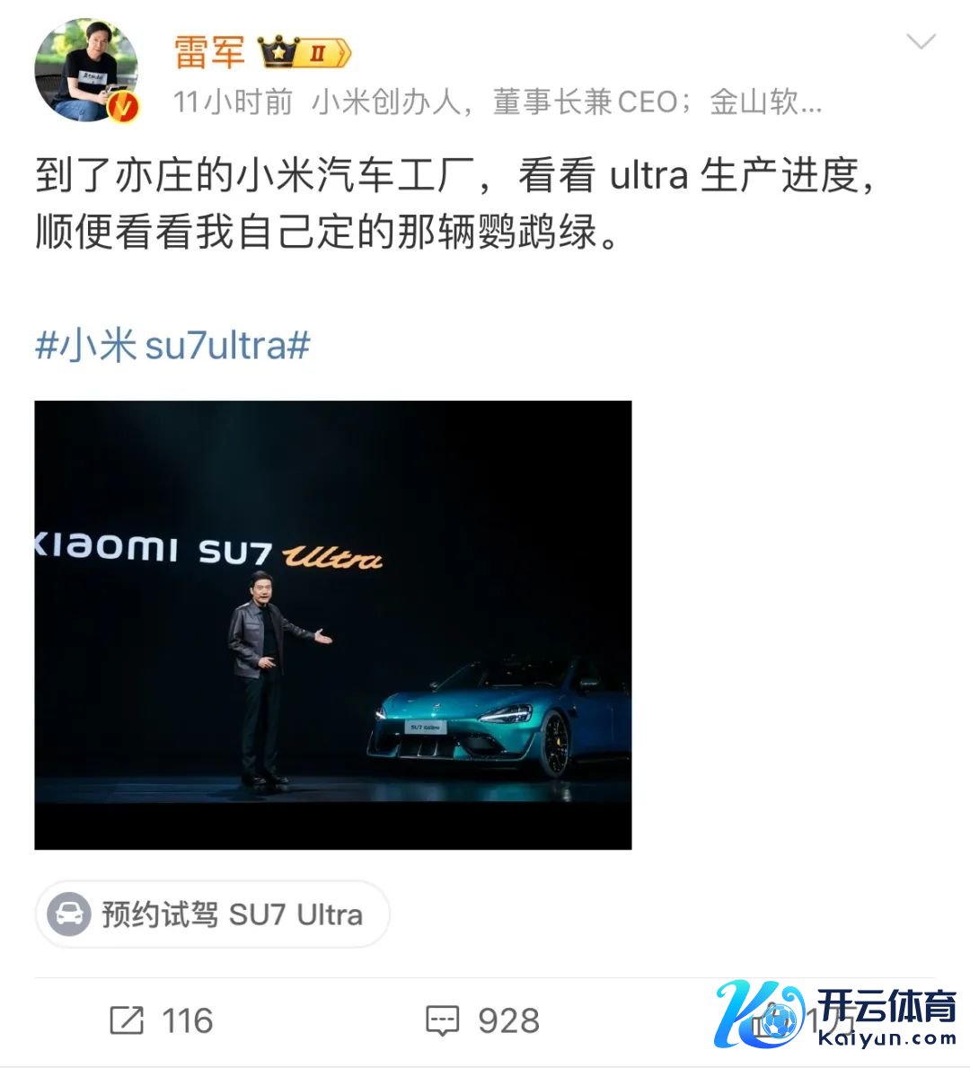 雷军3月1日在支吾平台预报了小米SU7 Ultra委用时候。“未来10点,寰球赓续开启委用。咱们将在小米汽车工场理睬首批车主,未来见!”