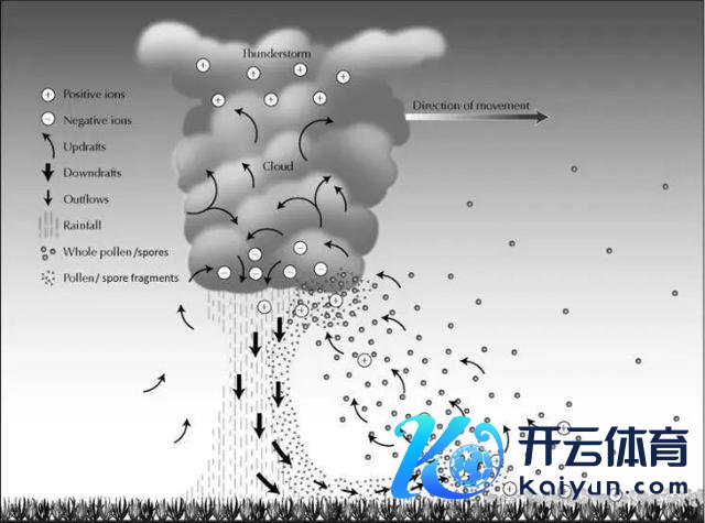 雷暴发生前,气温骤降、大风呼啸,会把大地的花粉、霉菌颗粒“卷”到云层里。云层中的潮湿和电荷会把花粉颗粒“劈”成更小的碎屑,直径约为2到3微米,随下千里气流和降雨回到大地,使空气中过敏原浓度剧增,能松驰钻进呼吸说念深处,平凡会在几分钟内诱发急性支气管痉挛。这些微粒长远鼻腔后,从而激励过敏性鼻炎症状加剧。