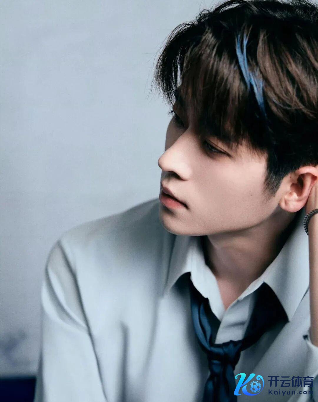 周柯宇这身绵薄基础的穿搭,配上鸢尾蓝色挑染,眨眼间擢升气场,充满个性。鸢尾蓝和原来的黑发造成反差,灯光下,仿佛每一根发丝都在闪闪发光。