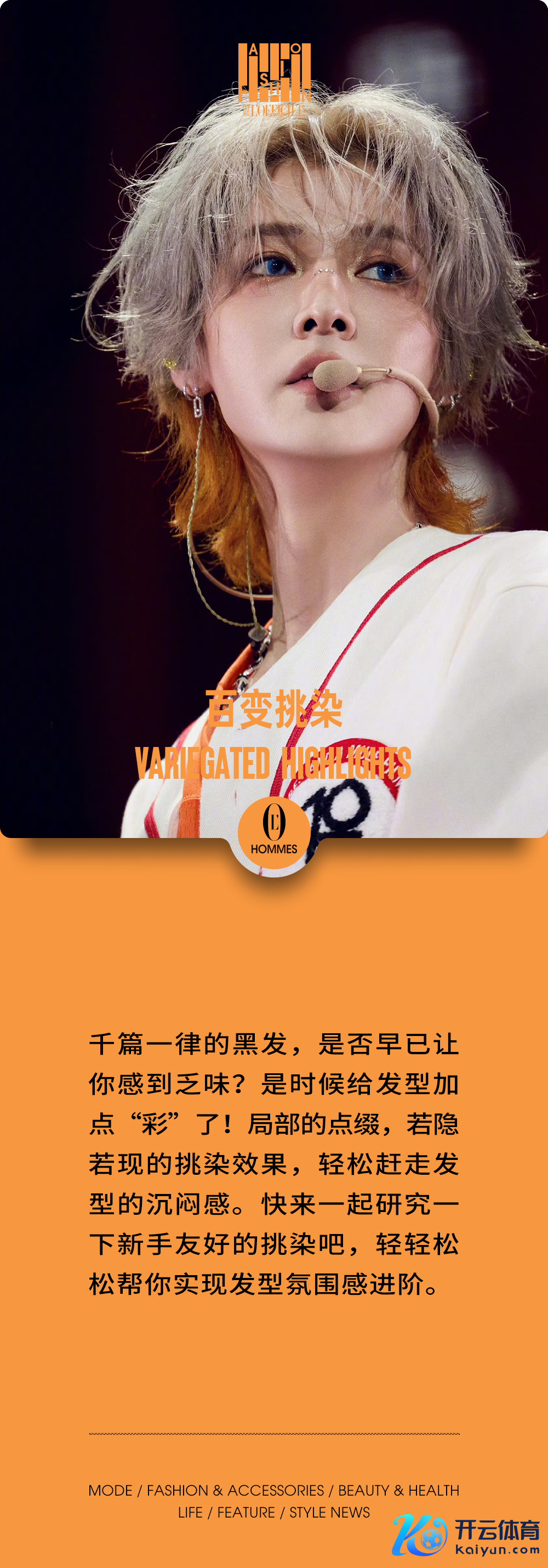 每天照镜子,看着一成不变的黑发,不免会感到有些败兴,不妨尝试换个发色?小数工致念念就能让通盘东谈主盖头换面。若是还在魂不守宅,可以参考男星们的不出错挑染范本,总有一款能戳中你的心。