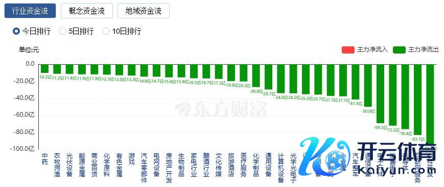 净流出方面,软件开发、互联网管事、半导体等净流出排行靠前,其中软件开发净流出94.13亿元。