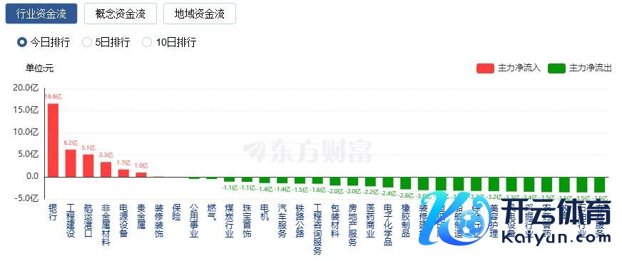 行业资金方面,收尾收盘,银行、工程建设、航运口岸等净流入排行靠前,其中银行净流入16.55亿。