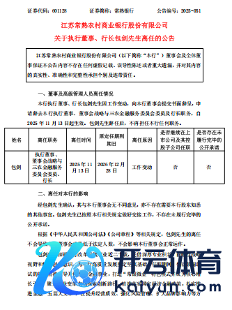体育游戏app平台常熟银行:包剑辞任行长、扩充董事等职务-开云(中国)Kaiyun·官方网站