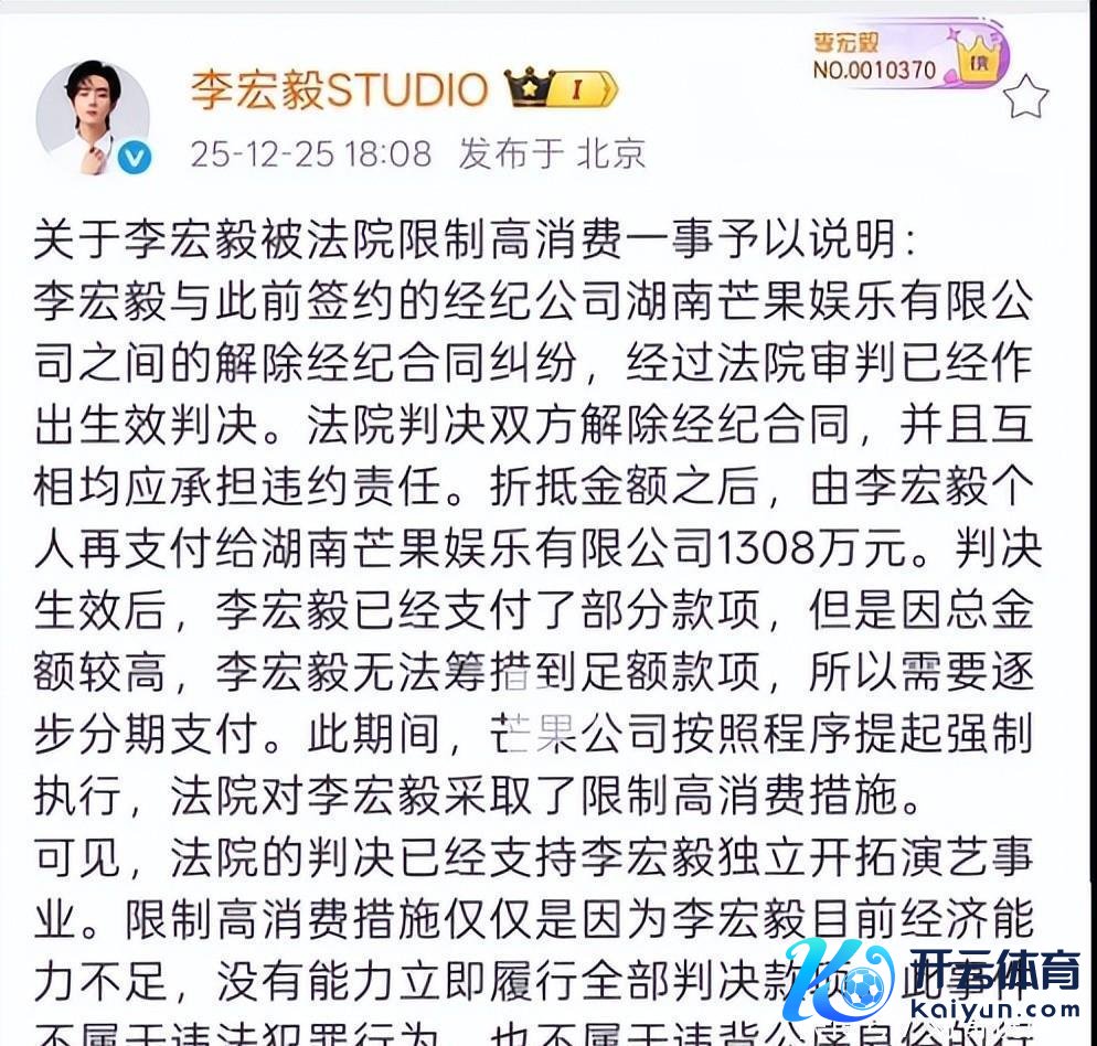 风云:千万债务与限高2014年的时辰,李宏毅年仅16岁,他与芒果文娱签约,公约是由监护东说念主代签的。,到了2017年,因为资源分派、酬劳方面出现问题,进而产生了矛盾。