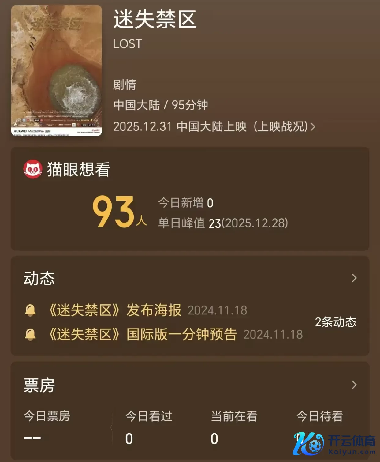 《迷失禁区》近两天票房只好零元,跨年档最惨电影降生了。