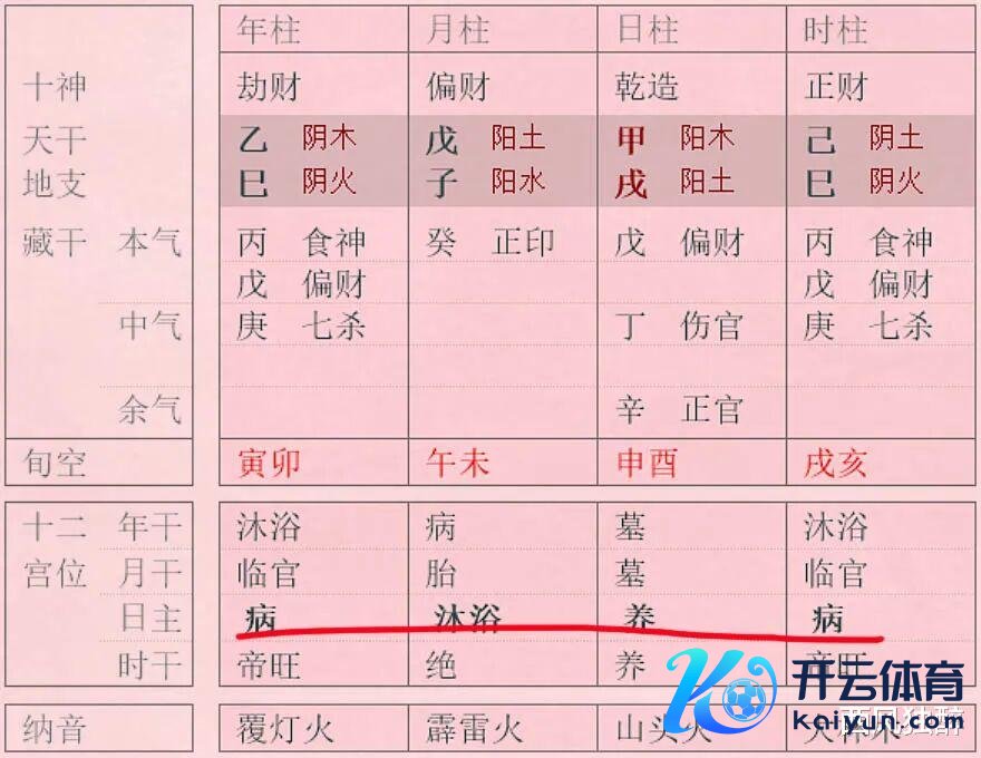 上图是今天,也便是公历2025年12月31日巳时竖立小孩的八字,为乙巳、戊子、甲戌、己巳。这个八字的日干为甲木,为命主本东说念主。甲木在年支巳上的十二永生状为“病”,咱们叫作念“年支坐病”,相通的,“时支坐败(沐浴)”、“自坐养(日支为命主自坐)”、“时支坐病”。“坐”咱们也不错说成“逢”,但“逢”字用在大运流年更准确。上图八字日干在四柱地支莫得一处坐“永生、冠带、临官、帝旺”,为身衰。虽然,这个八字日干在月支坐沐浴,沐浴其实是有旺气的,仅仅不辱骂常热烈的旺,是以详细判断,这个八字是“身偏衰,并非极衰”。