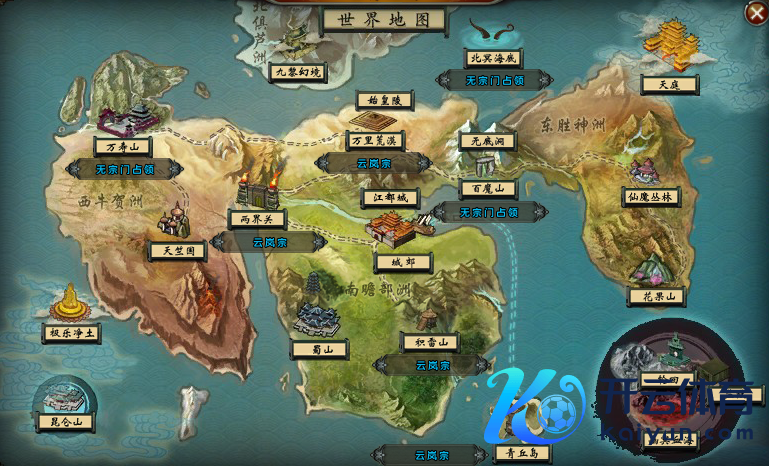 各宗门成员不错在19点至20点前去版图争夺战的指定版图进行活动。活动驱动时,宗门内的玩家需要前去指定舆图中的护旗地点地,如图所示: