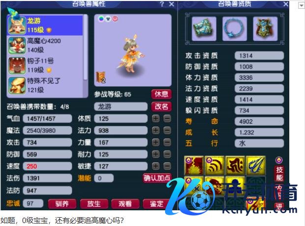 上头是一只龙游须弥的龙鲤,这位玩家示意这是一只零级的召唤兽,也即是这只召唤兽少了50点属性点,可是这些玩家有个念念法,念念给这只召唤兽打一册高等魔之心。
